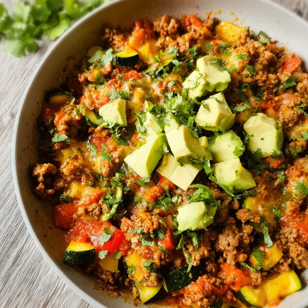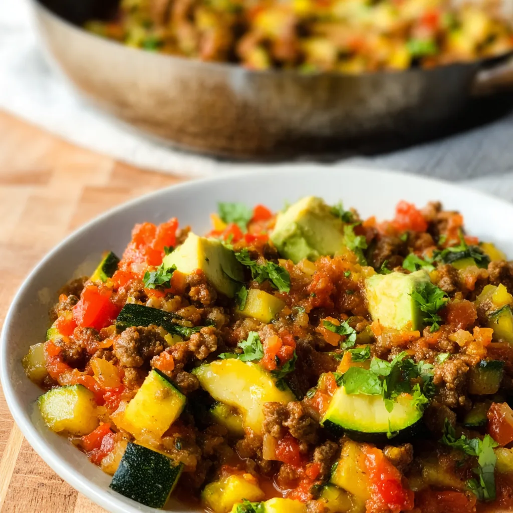 Picture this: it’s a busy weeknight, you’ve had a long day, and the last thing you want to do is juggle multiple pots and pans. Enter this skillet recipe. Everything—yes, everything—comes together in one pan. The zucchini soaks up all the smoky taco seasoning, the ground beef browns beautifully, and the cheese melts into a creamy blanket of deliciousness. Top it all with fresh avocado and cilantro, and you have yourself a meal that feels like taco night in a healthier, fuss-free package.