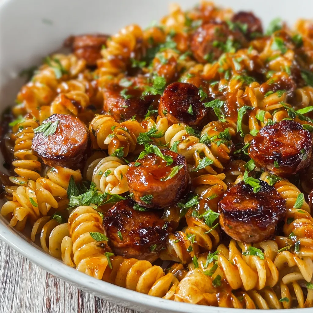 I first made this dish on a busy Tuesday evening when time was short but I was craving something indulgent. I tossed together what I had on hand: smoked sausage, BBQ sauce, a drizzle of honey, and pasta. By the time it was done, the sauce had caramelized into this glossy, rich coating that made every bite unforgettable. That moment — spoon in hand, hovering over the skillet — was when I knew this recipe would become a permanent part of my dinner rotation.