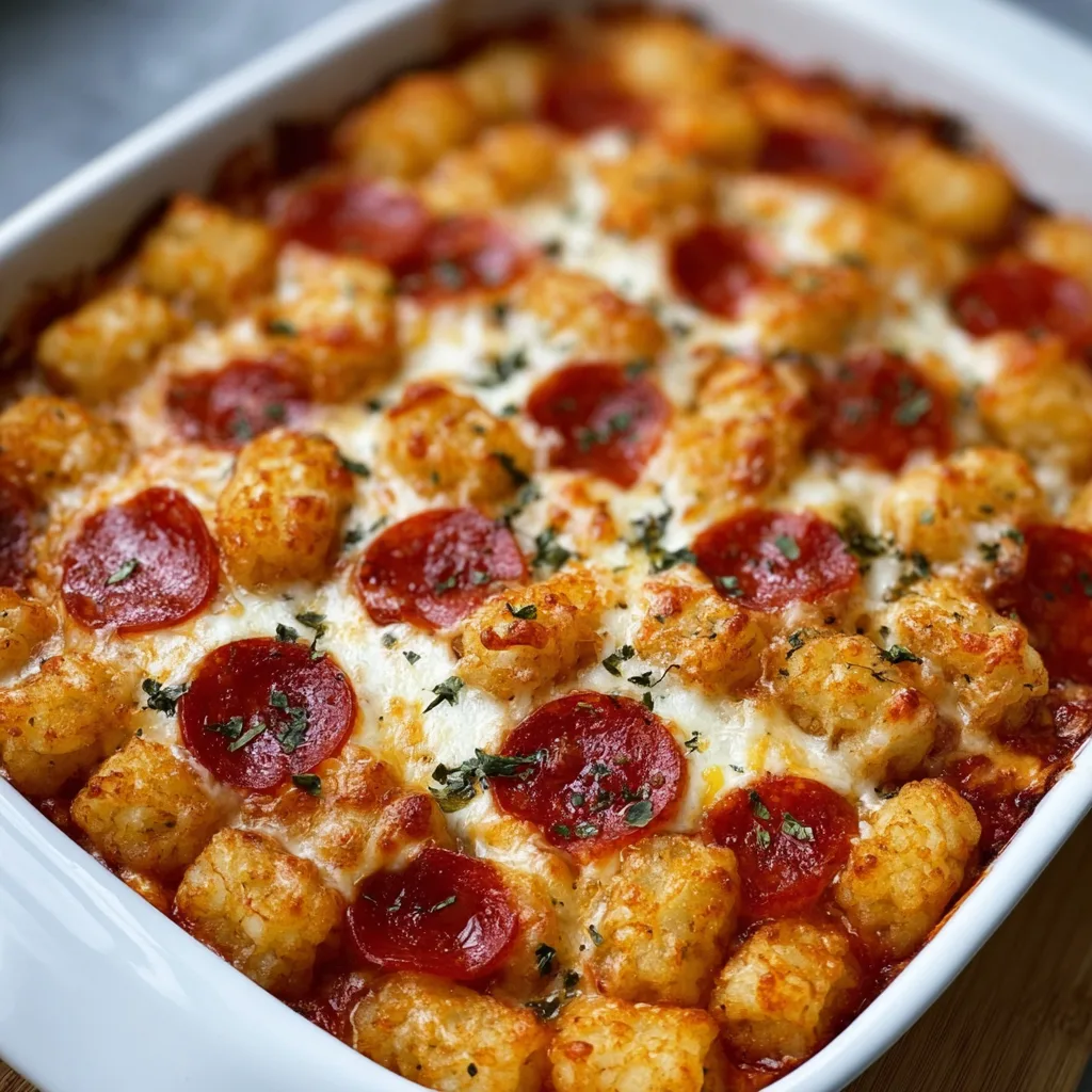 Pepperoni Pizza Tater Tot Casserole is a fun, kid-friendly dinner that combines all the best flavors of pizza in a hearty, baked casserole. Crisp tater tots layer atop a creamy, cheesy base filled with pizza sauce, pepperoni, and gooey mozzarella. This recipe is perfect for busy weeknights, potlucks, or anytime you want a comforting, easy-to-make meal that pleases everyone at the table.
