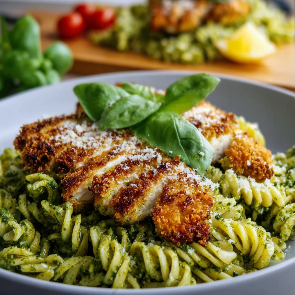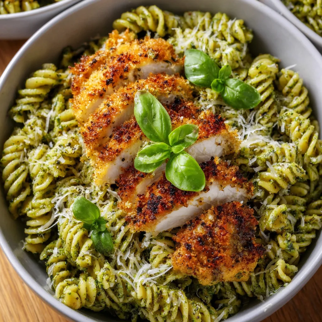 Pesto Pasta with Crispy Parmesan Chicken – The Comfort Dish You’ll Crave Every Week