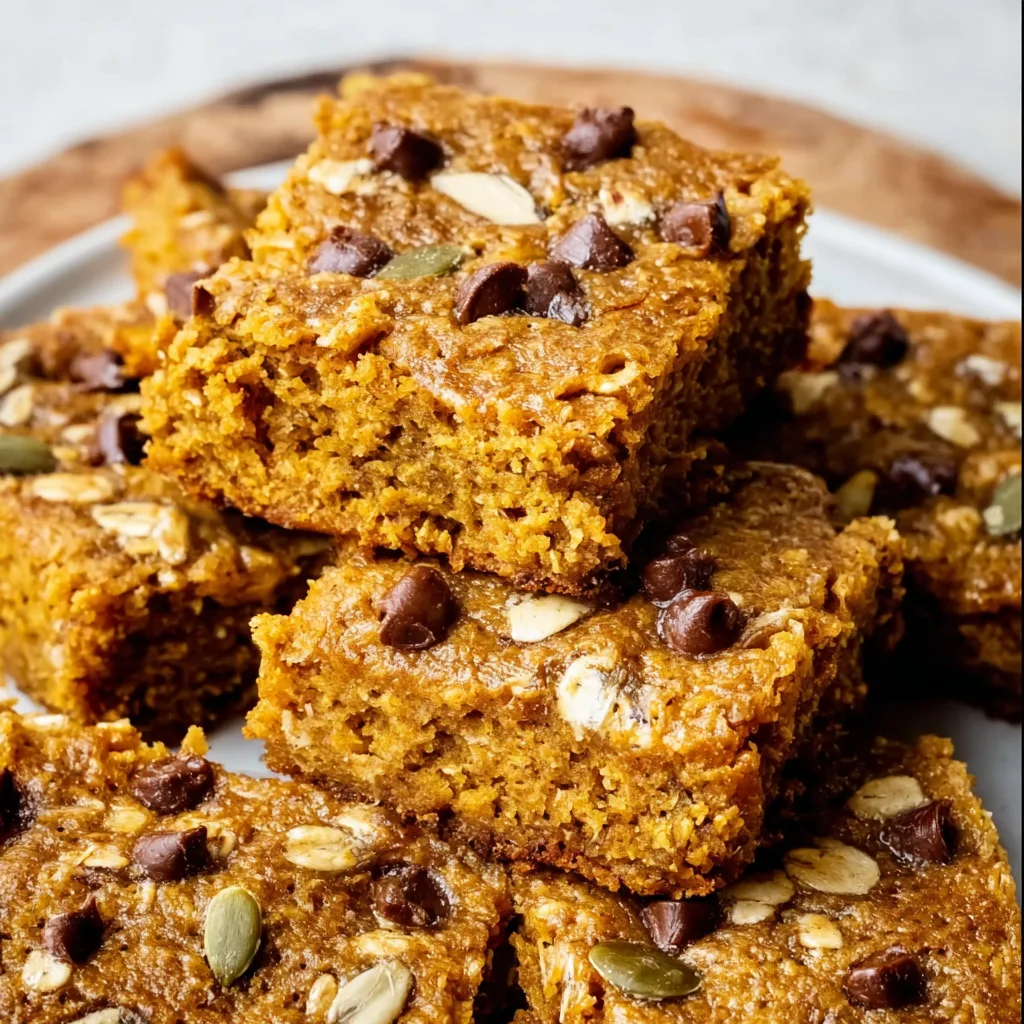 Packed with oats for heartiness and pumpkin puree for natural moisture, they’re a guilt-free way to enjoy seasonal flavors. With warm spices like cinnamon, nutmeg, and cloves, every bite tastes like a cozy fall hug. Whether enjoyed with morning coffee, packed in lunchboxes, or served as a sweet snack, these bars are bound to become a seasonal staple.