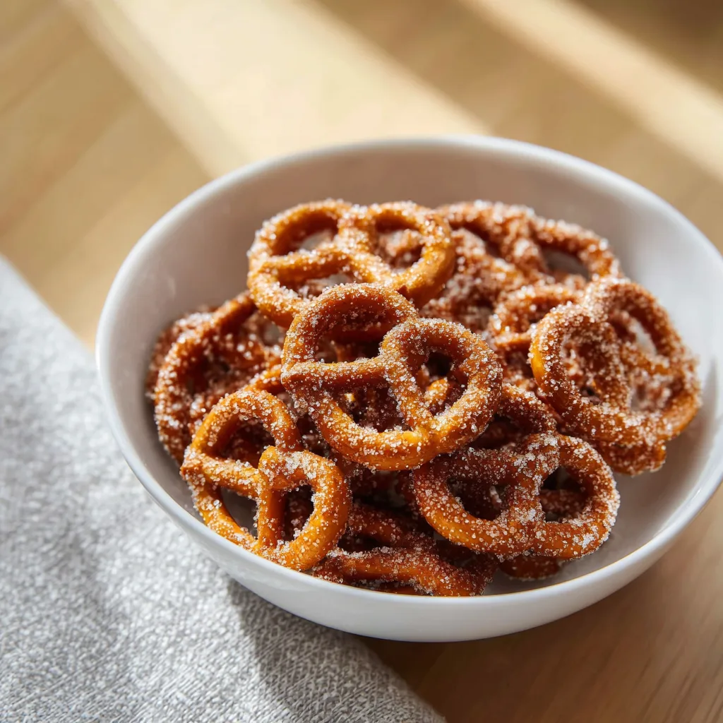 A cozy fall twist on classic pretzels, coated in buttery pumpkin spice sugar for a sweet and crunchy seasonal snack.