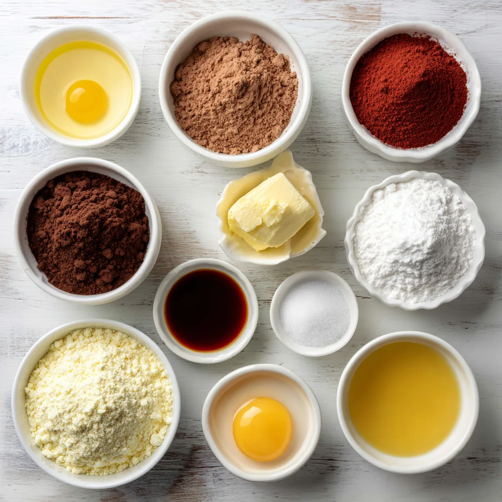 - Whisk together flour, cocoa powder, baking powder, baking soda, and salt.