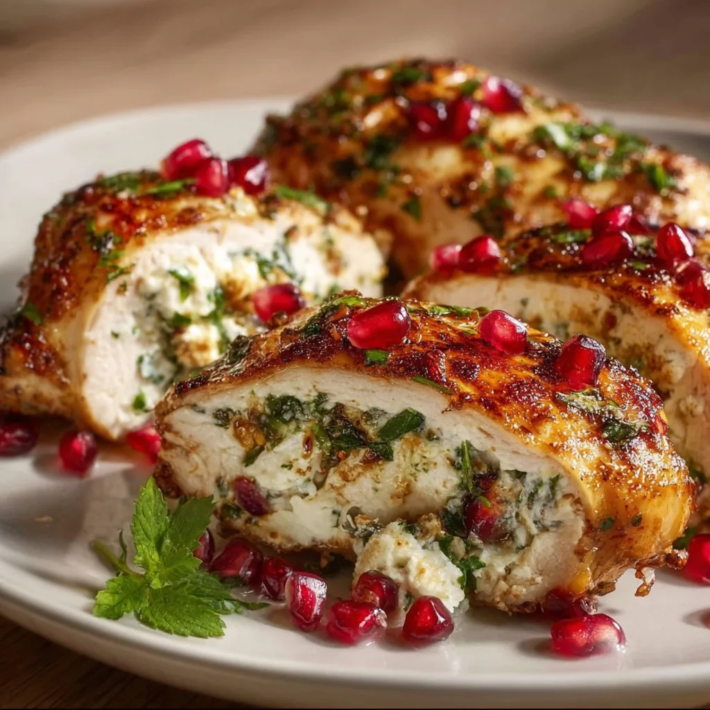 There’s something magical about a dish that looks like it belongs on a holiday table, yet is simple enough to make on a weeknight. This Ricotta Pomegranate Stuffed Chicken is one of those recipes — a perfect blend of savory and slightly sweet, with creamy ricotta cheese tucked into juicy chicken breasts and jeweled pomegranate seeds adding brightness and a touch of tartness.