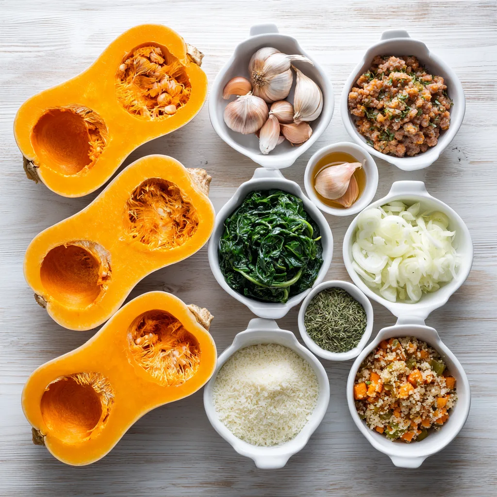 The beauty of this recipe lies in its balance. Butternut squash is naturally sweet, velvety, and earthy — practically begging to be filled with something savory and rich. Enter Italian sausage, sautéed onions, garlic, spinach, herbs, and a touch of cheese and breadcrumbs. The savory filling melts into the tender roasted squash, creating a perfect harmony of flavors. Each bite gives you sweet roasted squash, rich sausage, soft greens, aromatic garlic, and a satisfying cheesy crust on top. It’s comfort food with personality, simple ingredients transformed into something warm and memorable.