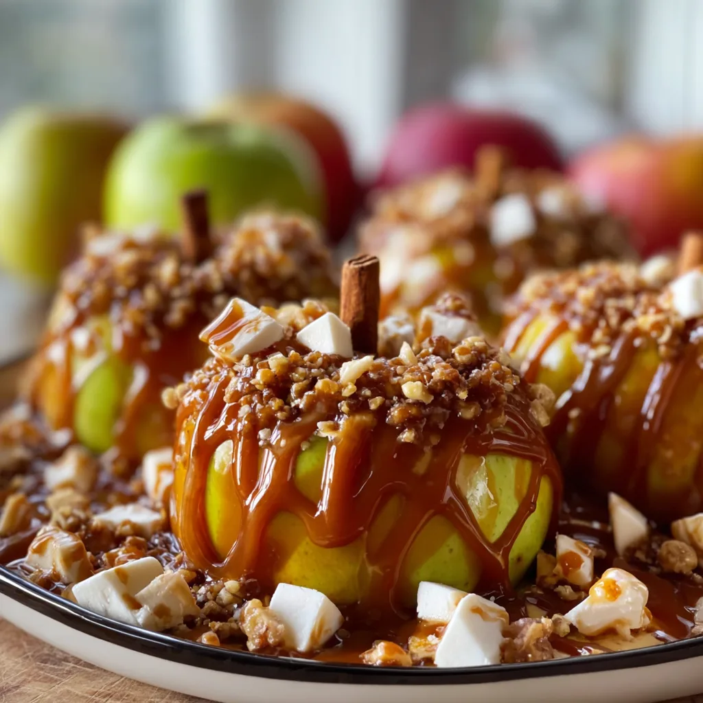 - Drizzle the caramel: Pour the warm caramel sauce generously over the apple slices.