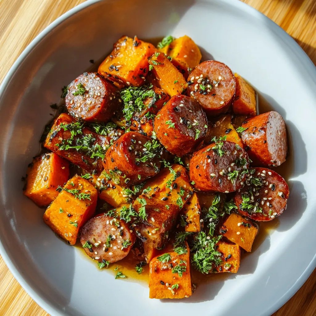 Sheet Pan Sausage and Sweet Potatoes with Honey Garlic Sauce