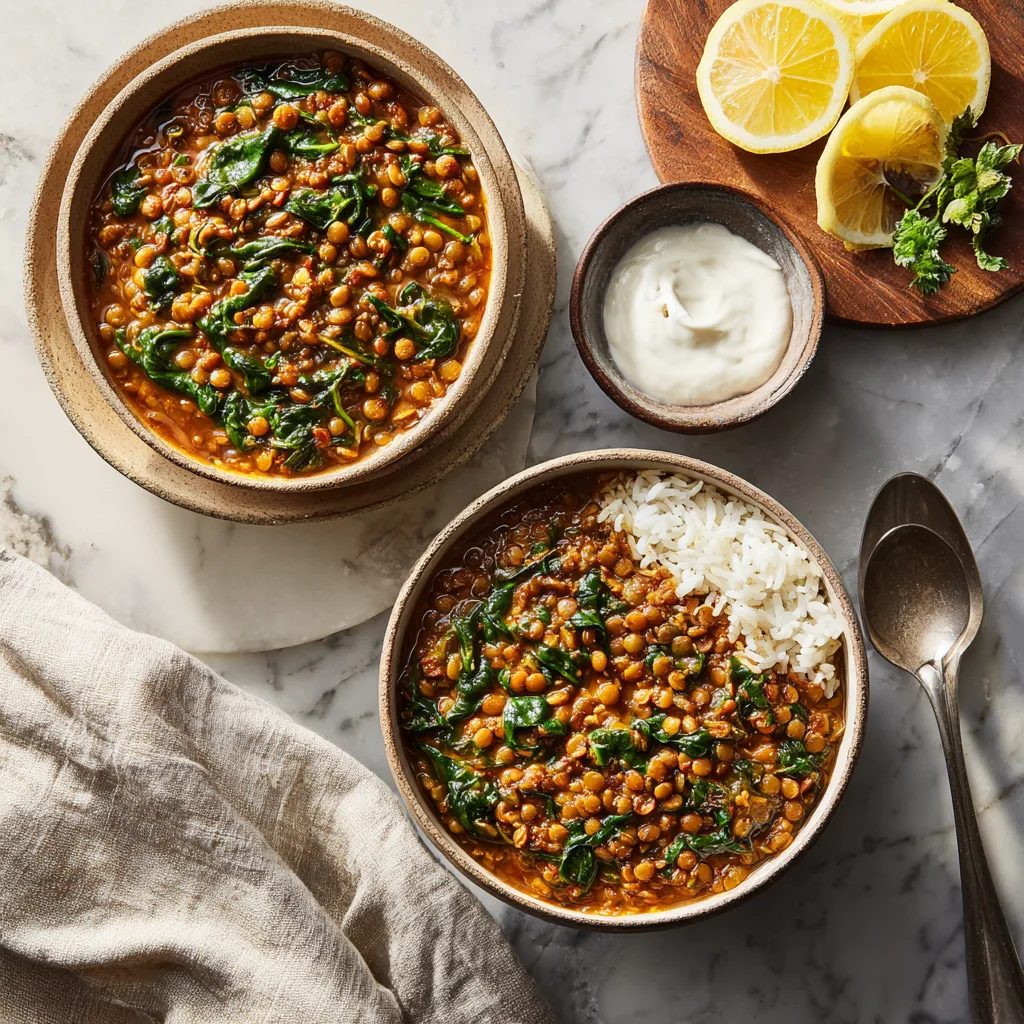 Lentils are packed with protein, fiber, and essential nutrients. Combined with spinach, they create a balanced and nourishing meal.
