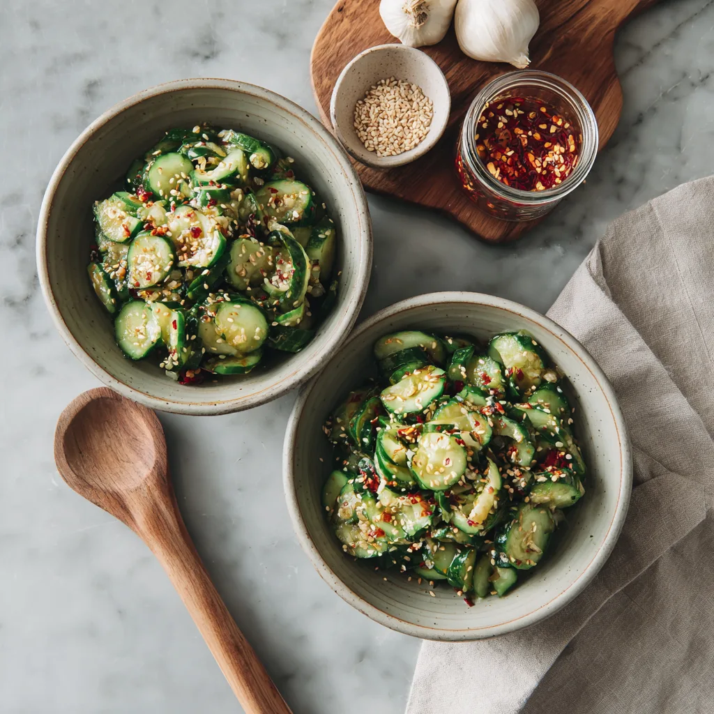 This spiral cucumber salad version keeps the authentic flavor profile but adds a modern twist in presentation. The spiral cut creates more surface area for seasoning and gives the dish a dramatic, restaurant-style look.