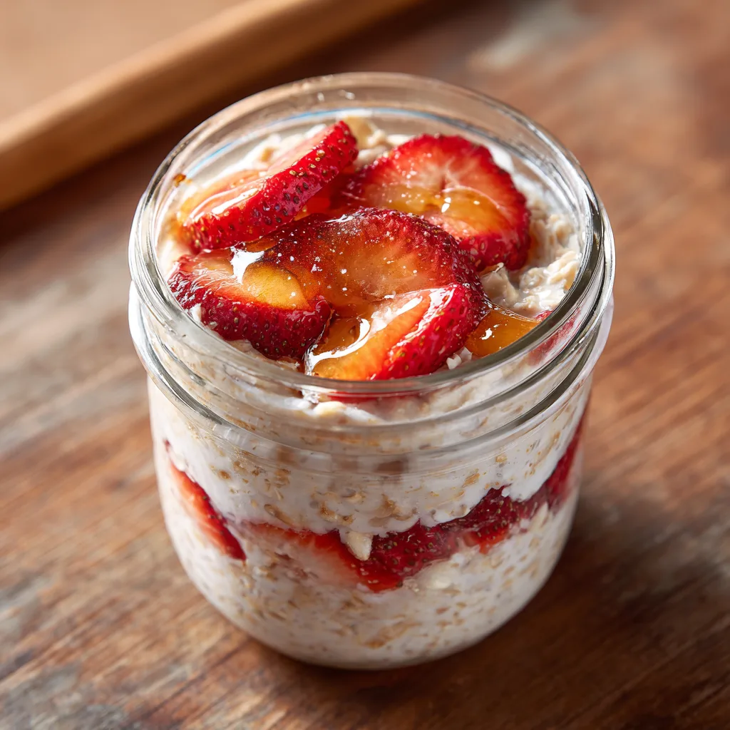 Chop fresh strawberries into small pieces. Fold them into the oat mixture, or layer them on top if you want a “fruit on the bottom” style jar.