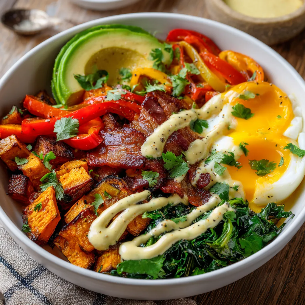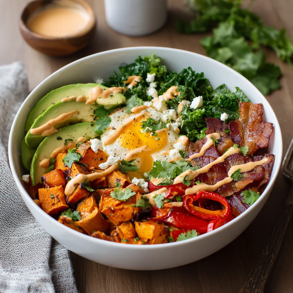 It’s flexible and forgiving, allowing home cooks to swap ingredients based on preference or seasonal produce. The bowl format makes it visually appealing and convenient, especially for meal prep or family breakfasts. Each bite provides texture contrast — creamy avocado, tender sweet potatoes, and crisp fresh veggies — which makes it a satisfying, nutrient-dense breakfast that keeps you full and energized.