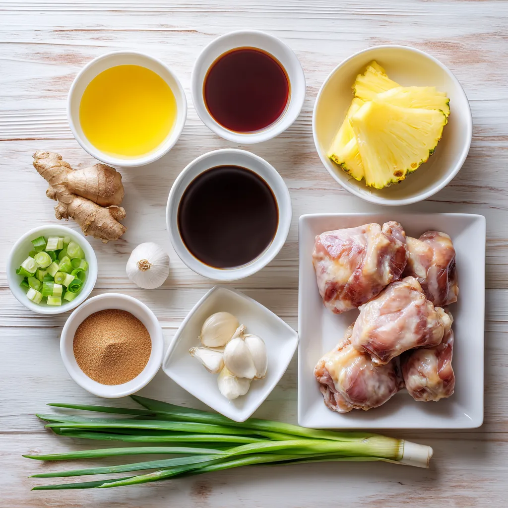 - Serve chicken with pineapple and garnish with green onions.