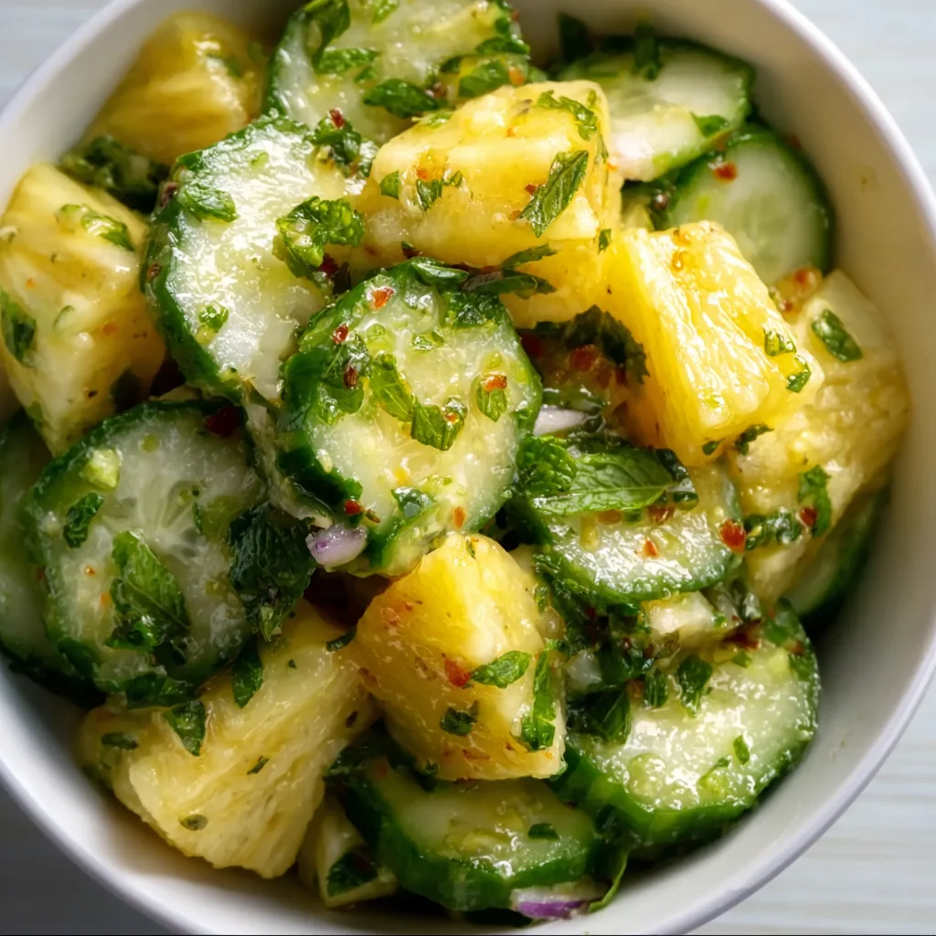 Pineapple has long been associated with hospitality and tropical cuisine, while cucumber has been prized for centuries for its cooling and hydrating properties. Together, they create a naturally refreshing combination that’s popular in warm climates around the world. This salad draws inspiration from tropical fruit salads and modern fresh cuisine, blending simplicity with vibrant flavor.