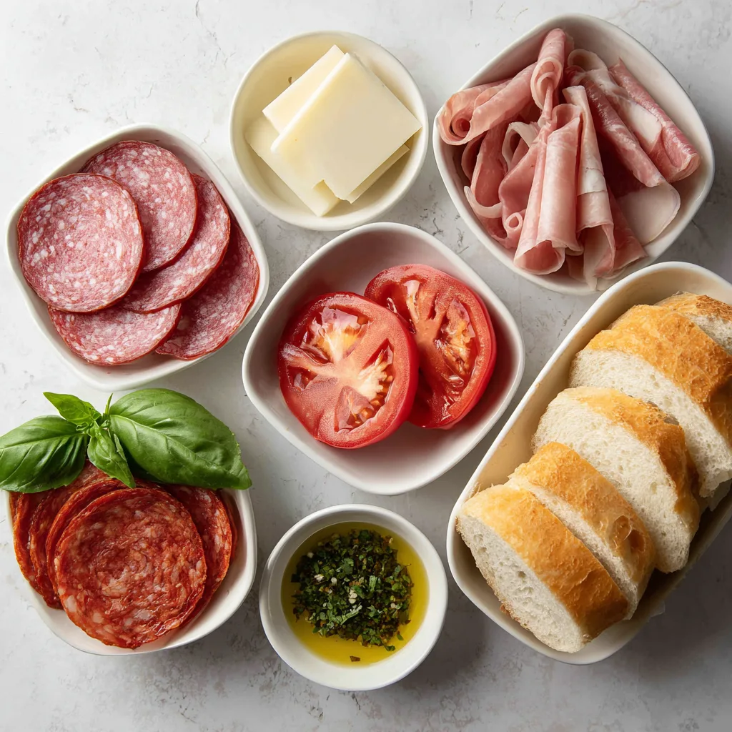 The heart of any Italian sandwich is the trio of meats. Traditionally, salami, ham, and pepperoni are layered for that iconic salty-savory punch. Provolone melts into them like glue, holding everything together in warm, delicious harmony. Add thin slices of tomato, rings of red onion, a sprinkle of oregano, and a drizzle of Italian dressing and you’re well on your way to a deli-worthy masterpiece.