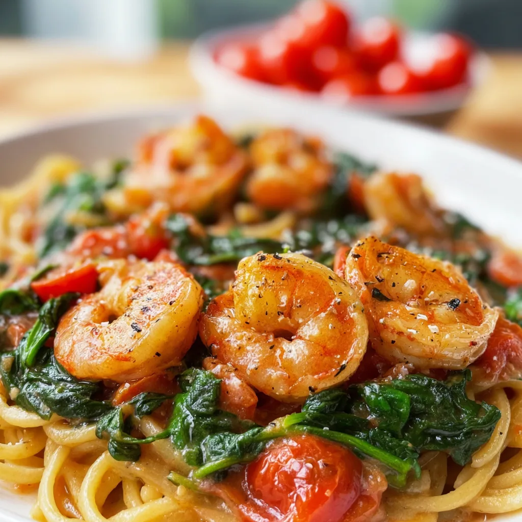 This dish has become a go-to in my kitchen for nights when I want something that tastes restaurant-worthy without spending hours cooking. The shrimp cook in minutes, the tomatoes break down just enough to create a glossy sauce, and the spinach melts into the pasta, adding color and a subtle earthy note. It’s simple food, but it feels special, which is exactly what a great pasta dish should do.