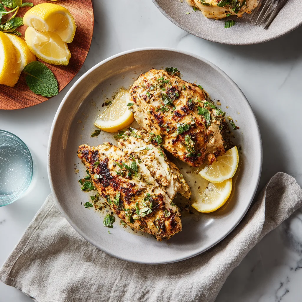 Juicy, tender chicken marinated in creamy yogurt, garlic, lemon, and warm spices, then baked or grilled to golden perfection.
